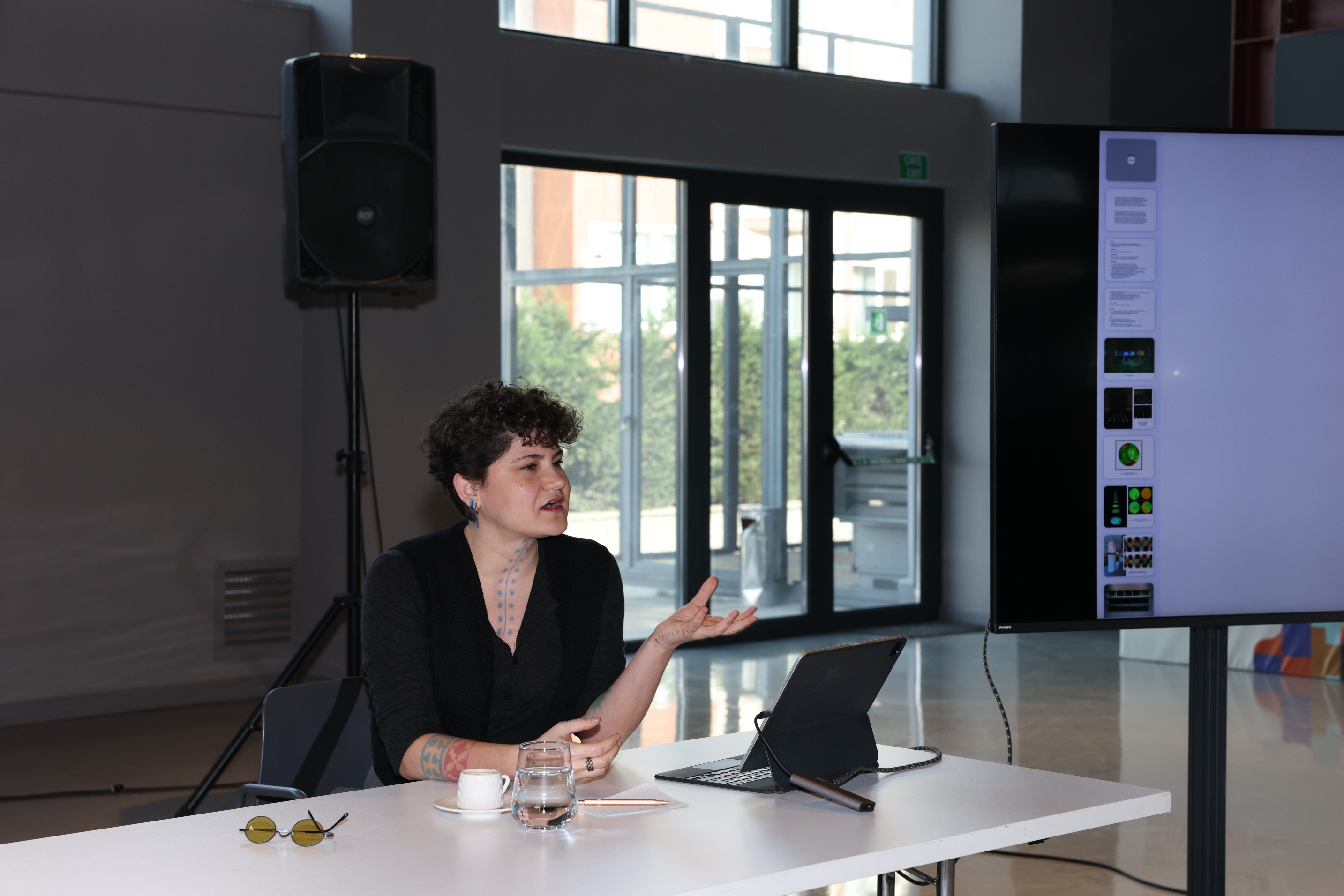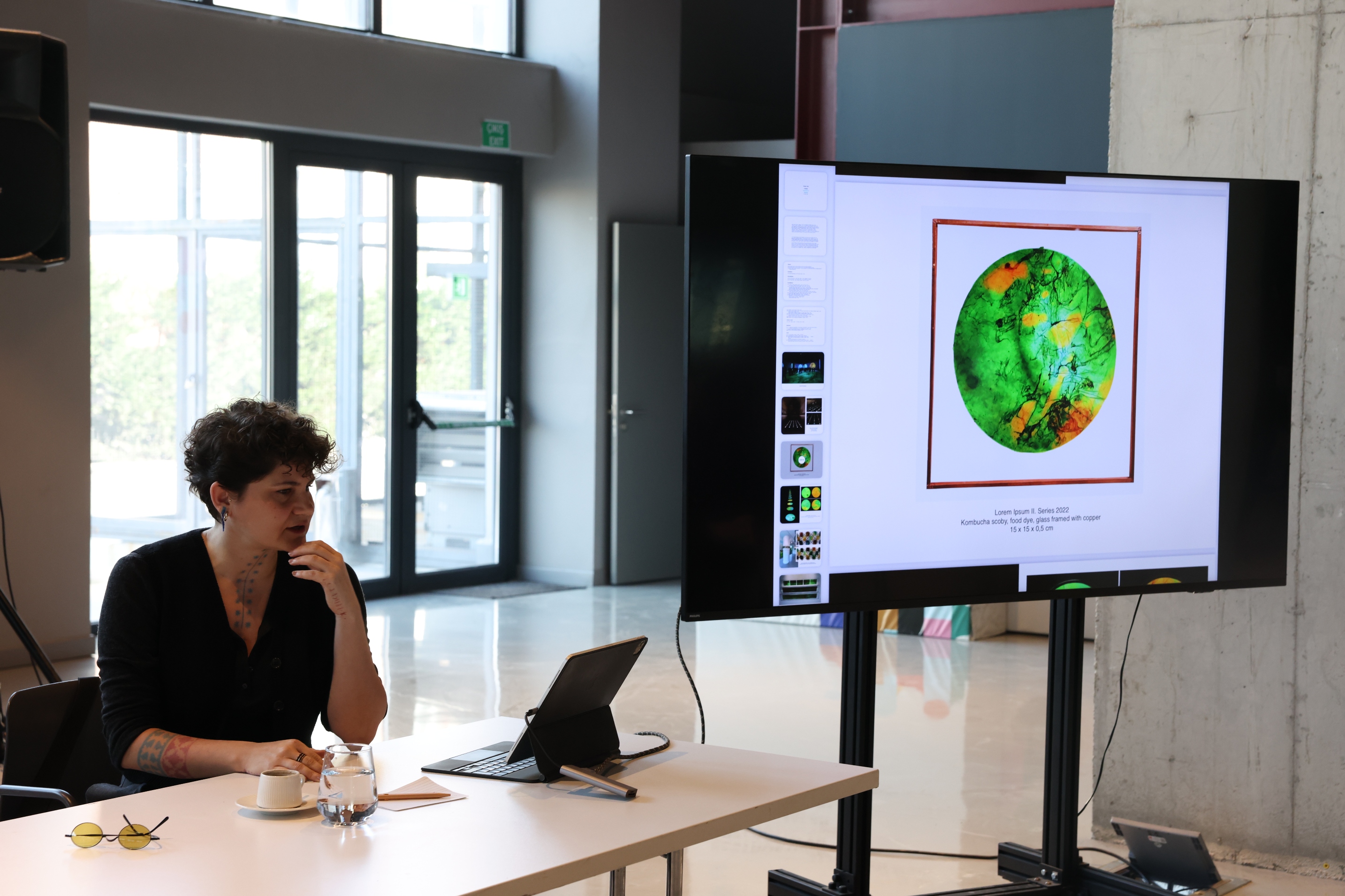 Etkinlikte, kaynak kullanımı, sanat yapıtında biyolojik materyallerin yeri, materyal üretimi ve yetiştiriciliği, çevre dostu üretim yöntemleri üzerine konuşuldu. Yeşil, “Sürekli geri dönüşüm konuşuyoruz.