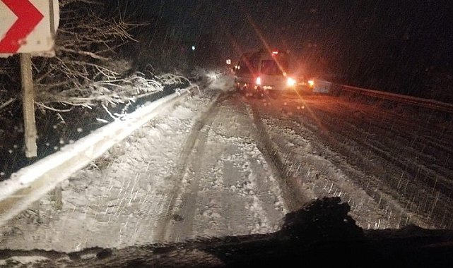 Meteroloji'nin günler önce uyarısı sonrası beklenen kar yağışı Bilecik'in Pazaryeri ilçesinde yüzünü gösterirken Belediye ekipleri ilçeyi Bilecik'e, Bozüyük'e bağlayan karayolunun kar yağışı nedeniyle kapanmaması için mücadele ediyor.Pazaryeri Gündem / BİLECİK (İGFA) - Pazaryeri'nde yollar kapanmasın diye Başkan çalışmaları yakından takip etti.Pazaryeri'nde dün gece etkili olan kar yağışı sonrası Bilecik Kavşağı ile ilçe arasında bulunan Akgün rampasında bir iki aracın yolda kaldığı ihbarı alan Pazaryeri Belediyesi ekipleri karayolu ekiplerinin gelmesini beklemeden kar küreme ve tuzlama çalışması yaptı.Her türlü olumsuzlukla karşılaşan vatandaşları belediye ekipleri ve kendisini aramalarını isteyen Başkan Tekin, ilçede merkezinde şu an kapalı yol bulunmadığını söyleyip ilçede kurulan kriz merkezinde çalışmaları yakından takip etmeye sabaha kadar sürdüreceğini belirtti.