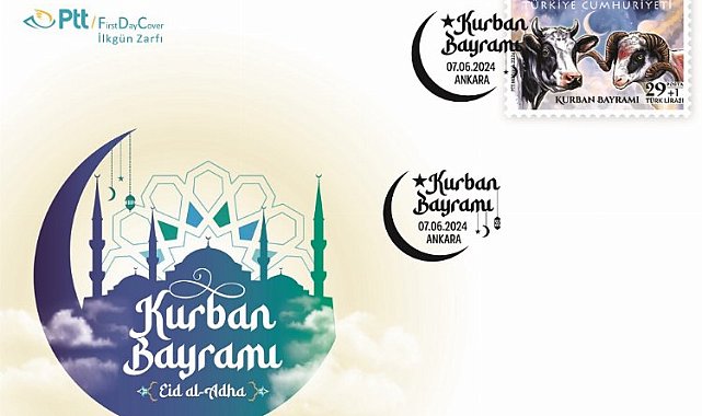PTT AŞ tarafından "Kurban Bayramı" konulu anma pulu ve ilkgün zarfı 7 Haziran 2024 tarihinde tedavüle sunuldu.İSTANBUL (İGFA) - PTT AŞ, 7 Haziran 2024 tarihinde "Kurban Bayramı" konulu 29+1 TL (36 x 52 mm boyutunda) bedelli anma pulu ile söz konusu pula ait 59 TL bedelli ilkgün zarfını abone sayısı kadar PTT iş yerlerinde ve PTT AŞ'ye ait www.filateli.gov.trweb adresinde satışa sundu.