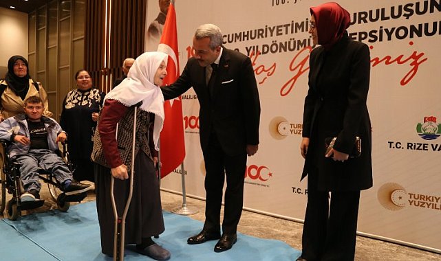 Rize Belediye Başkanı Rahmi Metin, Rize Valiliği tarafından düzenlenen 29 Ekim Cumhuriyet Bayramı Resepsiyonu'na katıldı.RİZE (İGFA) - Çiftekavak Ricosta Otel'de gerçekleşen Rize'deki Cumhuriyet resepsiyonunda Belediye Başkanı Rahmi Metin'in yanı sıra; Rize Valisi İhsan Selim Baydaş, il protokol üyeleri, sporcular ve vatandaşlar yer aldı.Gecenin onur konuğu Güneysu ilçesinden 112 yaşındaki Fatma Demir teyze oldu.Vali Baydaş'ın Cumhuriyet'in anlam ve önemini anlatan konuşma yaptığı 29 Ekim Cumhuriyet Bayramı Resepsiyonu 100. Yıl pasta kesimi müzik dinletisi ile son buldu.
