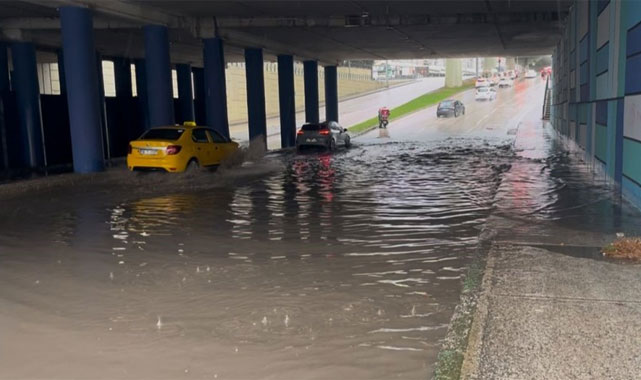 Bursa’da bir süredir etkisini sürdüren lodos, yerini sağanak yağışa bıraktı. Yoğun yağış sonrası alt geçitte biriken sular, araç trafiğinin yoğun olduğu kavşakta ulaşımda aksamalara neden oldu. Su seviyesinin yükselmesiyle birlikte yağmur suları kaldırımlara kadar taştı.