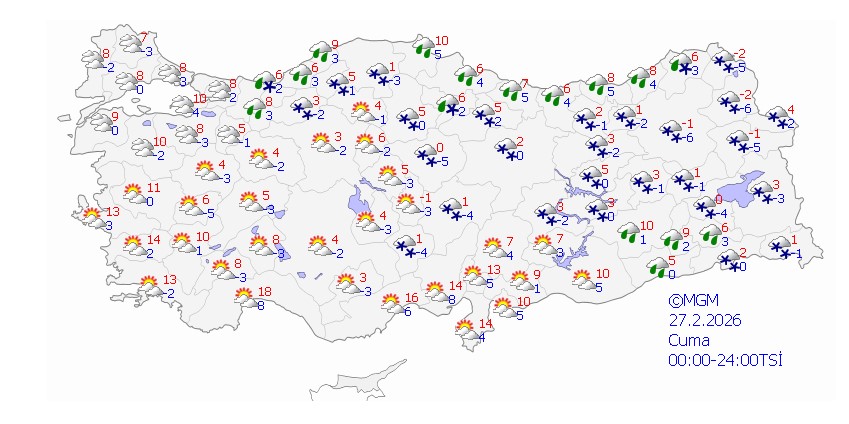 - Cuma: Aralıklarla sağanak yağış bekleniyor, sıcaklık 3-7 derece arasında olacak.