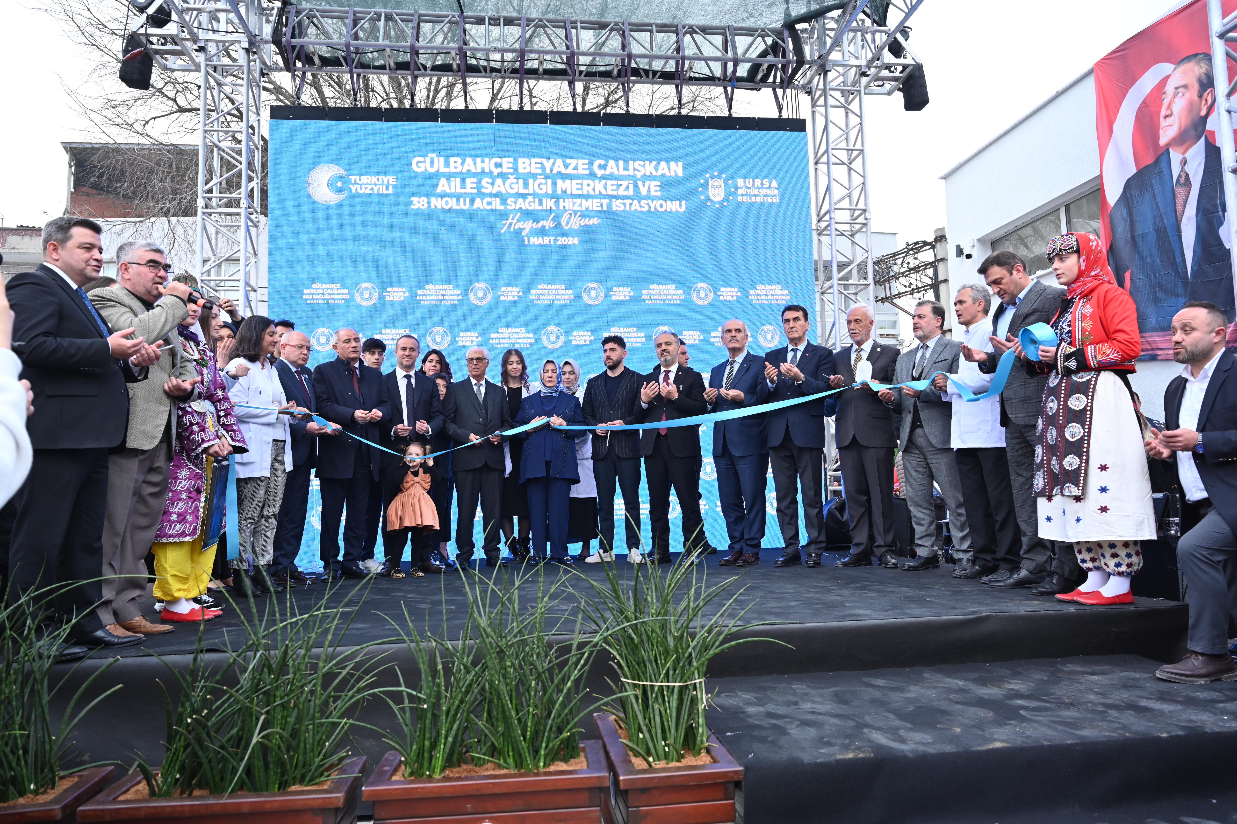 Gülbahçe Mahallesi’nde sağlık hizmetlerinin daha nitelikli verilmesini sağlayacak merkezin açılış törenine AK Parti Genel Başkanvekili ve Bursa Milletvekili Efkan Ala, AK Parti Yerel Yönetimler Başkan Yardımcısı Recep Altepe, Bursa Büyükşehir Belediye Başkanı Alinur Aktaş ve eşi Sevinç Aktaş, hayırsever işadamı Davut Çalışkan, eşi Beyaze Çalışkan ve ailesi, AK Parti İl Başkanı Davut Gürkan, MHP İl Başkanı Muhammet Tekin, Osmangazi Belediye Başkanı Mustafa Dündar, İl Sağlık Müdürü Dr. Orkun Yıldırım, siyasi parti temsilcileri, meclis üyeleri, muhtarlar ve vatandaşlar katıldı. “Mini hastane gibi oldu”
