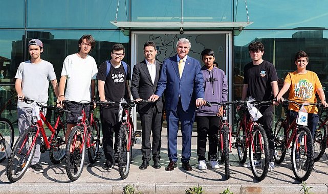 Sakarya Büyükşehir Belediye Başkanı Ekrem Yüce, eğitimde ve sporda başarı elde eden isimleri bisikletle ödüllendirdi.SAKARYA (İGFA) - Sakarya'da eğitimde ve sporda başarılı öğrenciler bisiklet ödülünü aldıBisiklet Dostu Şehir unvanlı Sakarya'da başarılı gençleri bisikletle ödüllendiren Başkan Ekrem Yüce, "Başarılı gençlerimizi bisikletle ödüllendirmek hem onların hem de tüm gençlerimizin motivasyonunu arttırıyor" diye konuştu.Başkan Yüce, TÜBİTAK Teknofest elektrikli araçlar yarışması görsel tasarım ödülünü kazanan öğrencilere, MÜSİAD ülke sunum yarışmasında dereceye girenlere, altyapı sporcusu Alperen Çolak'a, Sakarya İmam Hatip Ortaokulları Kur'an-ı Kerimi güzel okuma yarışması Sakarya birincisi ve Marmara Bölge üçüncüsüSerdivan Anadolu İmam Hatip Lisesi öğrencisi Abdullah Zeyd'e ve 27. Balkan Çocuklar Karate Şampiyonası Şampiyonu Ayşen Saner'e ve ikincisi Sare Kaya'ya bisikletlerini teslim etti.