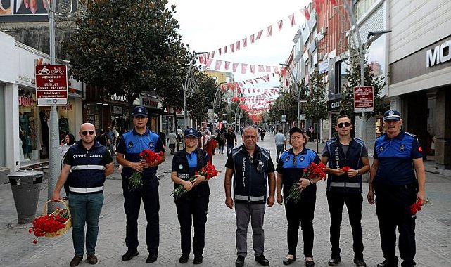 Sakarya Büyükşehir Belediyesi zabıta ekipleri 1-7 Eylül Zabıta Haftası münasebetiyle şehir merkezinde vatandaşlara ve esnafa karanfil dağıtımı gerçekleştirdi.SAKARYA (İGFA) - Sakarya Büyükşehir Belediyesi Zabıta Daire Başkanlığı 1-7 Eylül Zabıta Haftası münasebetiyle Çark Caddesi ve Uzunçarşı'da vatandaşlara ve esnaflara karanfil dağıttı.Zabıta teşkilatının 197. kuruluş yılı olan haftada, vatandaşların huzuru, güvenliği için çalışan zabıta ekiplerini vatandaşlar da kutlayarak tebrik etti.Zabıta Daire Başkanlığından yapılan açıklamada, "Teşkilatımızın 197. kuruluş yılı dolayısıyla Çark Caddesi ve Uzunçarşı'da vatandaşlara ve esnaflara karanfil dağıttık. Bizleri güler yüzle karşılayan tüm hemşerilerimize teşekkür ediyoruz. Zabıta teşkilatı olarak vatandaşlarımızın huzuru ve güvenliği için çalışıyor, 7/24 anlayışıyla görev yapıyoruz. Bu vesileyle teşkilatımızın 197. Yılını kutluyor, ekiplerimize çalışmalarında kolaylıklar diliyoruz" denildi.