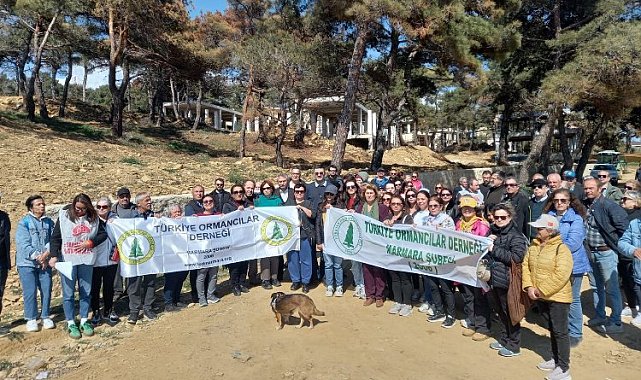 Saros Gönüllüleri Çanakkale Adilhan'da ormanda yaşanan betonlaşmaya tepki gösterdi.