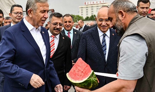 Ankara Büyükşehir Belediye Başkanı Mansur Yavaş, Yenimahalle Toptancı Hali'ni ziyaret etti. Hal esnafının alkış ve sloganlarıyla karşılanan Yavaş, 31 Mart Yerel Seçimlerinde verdikleri destek için esnafa teşekkür etti. Hal esnafı da, Mansur Yavaş'a karpuz ikram etti.ANKARA (İGFA) - Yenimahalle'deki Toptancı Hali'ni ziyaret eden Yavaş, 31 Mart Yerel Seçimlerinde verdikleri destek için esnafa teşekkür etti.