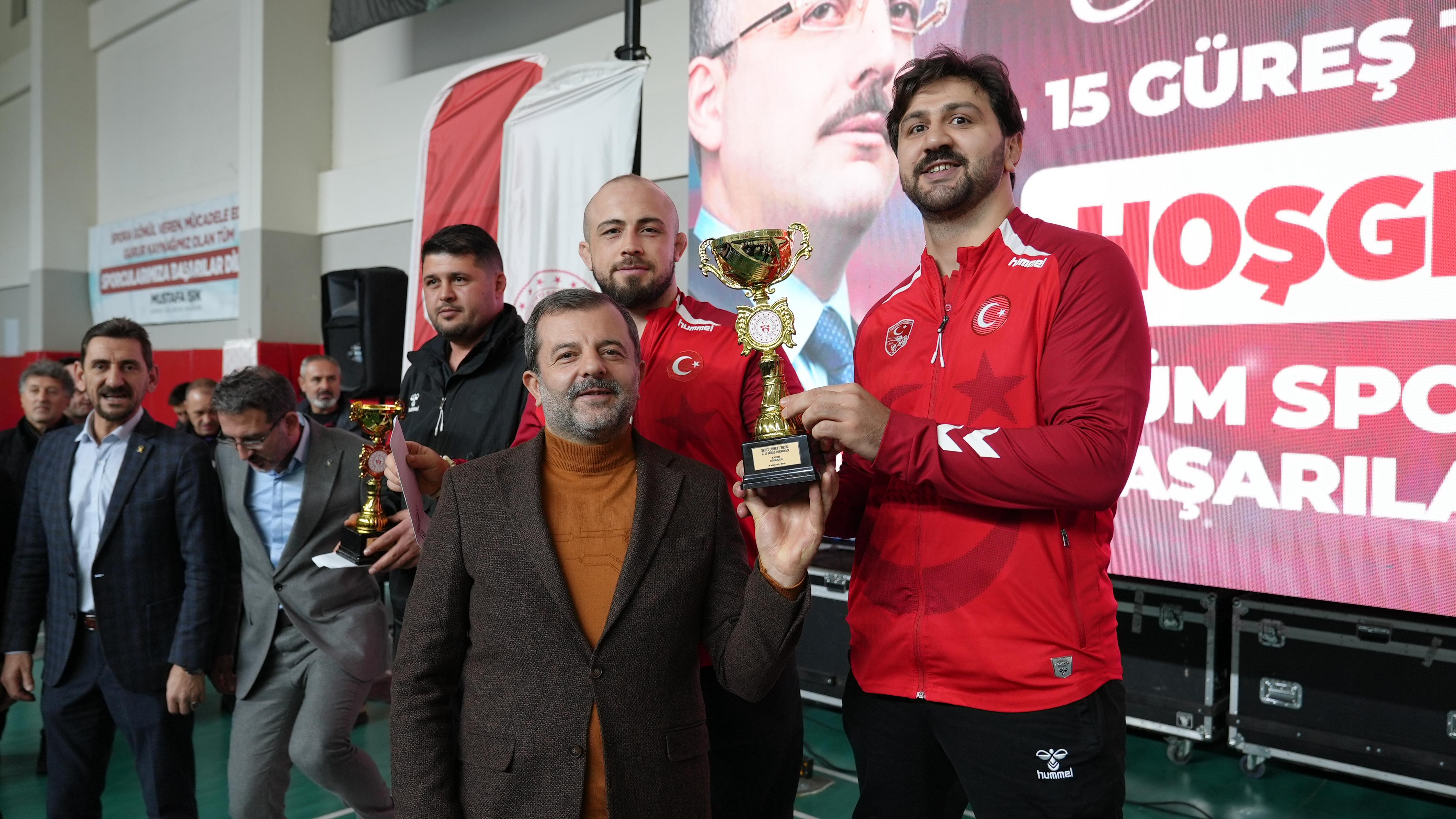 Belediyespor’un güreş sporcuları kupayı göğüsledi.