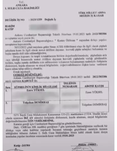 Olcay Kılavuz, Sinan Ateş dosyasında şüpheli olarak anılıyor