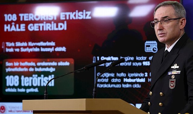 Milli Savunma Bakanlığı, terör örgütleri başta olmak üzere her türlü tehdit ve tehlikeye karşı TSK'nın faaliyetlerini amansız sürdürdüğünü belirterek son bir haftada 108 teröristin etkisiz hale getirildiğini açıkladı.ANKARA (İGFA) - Millî Savunma Bakanlığının faaliyetleri başta olmak üzere gündemdeki konulara ilişkin olarak Haftalık Basın Bilgilendirme Toplantısı gerçekleştirildi. Basın ve Halkla İlişkiler Müşaviri Tuğamiral Zeki Aktürk tarafından icra edilen toplantıda şu bilgiler paylaşıldı:Bakanlığın tüm birlik ve kurumları, ülkemizin savunma ve güvenliği için kendisine tevdi edilen tüm görevleri azim ve kararlılıkla yerine getirmeye; daha büyük, daha güçlü bir Türkiye için büyük bir şevk ve gayretle çalışmaya devam ettiği kaydedildi.Başta PKK/KCK/PYD-YPG, DEAŞ ve FETÖ terör örgütleri olmak üzere her türlü tehdit ve tehlikeye karşı mücadelesini artan bir etki ve yoğun bir baskıyla sürdüren Türk Silahlı Kuvvetleri'nin Irak ve Suriye'nin kuzeyi dâhil, son bir haftada, aralarında sözde yöneticilerin de bulunduğu 108 teröristi etkisiz hâle getirildiğini kaydeden Tuğamiral Zeki Aktürk, böylelikle 1 Ocak'tan bugüne kadar etkisiz hâle getirilen terörist sayısı 953'e ulaştığını söyledi.Geçen hafta içerisinde Irak'ın kuzeyindeki barınma alanlarından kaçan 2 PKK'lı terörist daha Habur'daki Hudut Karakolumuza teslim olduğunu kaydeden Tuğamiral Aktürk, hudutlarda da mücadelenin sürdüğünü kaydetti.Teknolojik vasıtalarla desteklenmiş fiziki güvenlik tedbirleri ile korunan hudutlarımızda alınan dinamik ve çok yönlü etkin tedbirler sayesinde son bir haftada yasa dışı yollarla geçmeye çalışan 355 şahsın yakalandığını kaydeden Aktürk, "Yakalanan şahıslardan 5'i terör örgütü mensubudur. 1.582 şahıs ise hududu geçemeden engellenmiştir. Böylelikle, 1 Ocak'tan itibaren hudutlarımızdan yasa dışı yollarla geçmeye çalışırken yakalananların sayısı 3 bin 488'e yükselmiştir. Hududu geçemeden engellenen kişi sayısı da 52 bin 442 olmuştur. Ayrıca 48 kilogramı son bir haftada olmak üzere yıl içerisinde yapılan operasyonlarda 288 kilogram uyuşturucu ele geçirilmiştir" dedi.