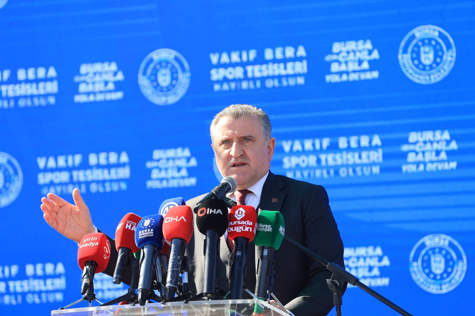 Törende konuşan Bursa Büyükşehir Belediye Başkanı Alinur Aktaş, gençlere ve çocuklara inanmış Cumhurbaşkanı Recep Tayyip Erdoğan ile yol arkadaşlığı yapmaktan büyük mutluluk duyduklarını söyledi. Vakıf Bera Spor Tesisleri’nin bile tek başına şehir ve ilçe için önem taşıdığını belirten Başkan Alinur Aktaş, şehrin dört bir tarafına futbol sahaları, spor salonları, tekvando salonları, okçuluk salonları gibi birçok tesisi kazandırdıklarını dile getirdi. Bu hizmetlerin büyük kısmını Gençlik ve Spor Bakanlığı’nın destekleriyle yaptıklarını ifade eden Başkan Aktaş, “Bursa büyüyor, gelişiyor. Çocuklarımız sporla hemhal oluyor. Yeni tesisler için Bakanımız Osman Aşkın Bak destek verecek. Bu mekan, 250 dönümlük bir alan. Burası bölgeye hayat veren alanlardan bir tanesidir. Öncelikle parkı Murat Kurum’un katılımıyla yapmıştık. İçerisinde farklı donatı alanları olan bir park. Bursaspor’un altyapı tesislerinin de bulunduğu bu bölgeye sporla alakalı bir tesis kazandırmak istedik. Güncel bedelle 160 milyon TL harcadık. Burada sadece futbol sahaları yok. Spor salonları, fitness alanları var. Tekerlekli sandalye basketbol takımımız burada maçlarını yapıyor. Öğrencilerimiz üniversite kurslarına burada hazırlanıyor. Gençlik ve Spor Bakanlığı’mızdan aldığımız desteklerle bunları hayata geçirdik. Bakanımız Osman Aşkın Bak’a ve ekibine teşekkür ediyorum. Şehri âbâd etmeye devam edeceğiz. Tesislerimiz hayırlı uğurlu olsun” dedi.