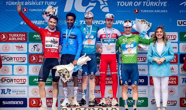 Bisikletçiler (Nötrölize) yarış dışı olarak İstanbul'da tur atıp etabı tamamladılar. Yarışın Genel Ferdi Şampiyonu, Yeşil Mayo, Kırmızı Mayo ve Beyaz Mayo sahipleri dünkü sonuçlar geçerli olmak üzere tescil edildi.İSTANBUL (İGFA) - 59.Cumhurbaşkanlığı Türkiye Bisiklet Tur'unun 105.4 kilometrelik İstanbul-İstanbul etabı hava muhalefeti ve yağan yağmurun parkuru kayganlaştırması nedeniyle koşulamadı. Bisikletçiler (Nötrölize) yarış dışı olarak İstanbul'da tur atıp etabı tamamladılar.Yarışın Genel Ferdi Şampiyonu, Yeşil Mayo, Kırmızı Mayo ve Beyaz Mayo sahipleri dünkü sonuçlar geçerli olmak üzere tescil edildi.TUR'UN ŞAMPİYONU BROEKGeçtiğimiz Pazar günü Antalya-Antalya etabı ile start alan ve 8 gün boyunca 1.188 kilometre yol kat eden bisikletçilerin bu yoğun mücadelesi İstanbul'da noktalandı. Tur'u DSM-Firmenich Takımı'ndan Frank Van Den Broek kazandı ve 2024'un şampiyonu olarak Turkuaz Mayo'nun ebedi sahibi oldu. İkinciliği Terengganu Takımı'ndan Kudus Merhavi, üçüncülüğü de Polti Kometa Takımı'ndan Paul Double kazandı. Beyaz ve Kırmızı Mayoları da Bike Aid sporcusu Vinzent Dorn elde etti. Sprint Mayo'sunu ise yine DSM-Firmenich Takımı'ndan Tobias Andresen elde etti. Takım halinde şampiyonluğu da Q.36.5 Pro Cycling kazandı.Tur sonunda mayolar sahiplerini buldu. GENEL KLASMAN (TURKUAZ MAYO) 1 - DSM-firmenich'ten Frank van den Broek - Gençlik ve Spor Bakanı Dr. Osman Aşkın Bak ve Bisiklet Federasyonu Başkanı Emin Müftüoğlu 2 - Terengganu'dan Merhawi Kudus - Gençlik ve Spor Bakanı Dr. Osman Aşkın Bak ve Bisiklet Federasyonu Başkanı Emin Müftüoğlu 3 - Polti Kometa'dan Paul Double - Gençlik ve Spor Bakanı Dr. Osman Aşkın Bak ve Bisiklet Federasyonu Başkanı Emin MüftüoğluPUAN KLASMANI (YEŞİL MAYO) 1 - DSM-firmenich'ten Tobias Andresen - Gençlik ve Spor Bakan Yardımcısı Safa Koçoğlu 2 - Polti-Kometa'dan Giovanni Lonardi 3 - DSM-firmenich'ten Fabio JakobsenDAĞLARIN KRALI MAYOSU (KIRMIZI MAYO) 1 - Bike Aid'den Vinzent Dorn - Spor Hizmetleri Genel Müdürü Veli Ozan Çakır 2 - DSM-firmenich'ten Frank van den Broek 3 - Beykoz Belediye'den Samet BulutTÜRKİYE GÜZELLİKLERİ KLASMANI (BEYAZ MAYO)1 - Bike Aid'den Vinzent Dorn - İstanbul Vali Yardımcısı Ünal KılıçarslanTakım klasmanı lideri Q36.5 - Gençlik ve Spor Bakanı Dr. Osman Aşkın Bak ve Bisiklet Federasyonu Başkanı Emin Müftüoğlu