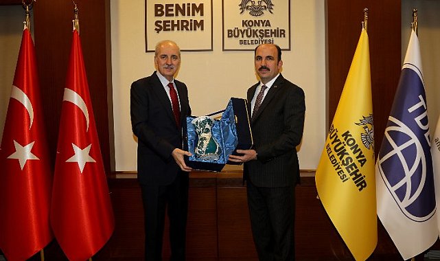 Türkiye Büyük Millet Meclisi Başkanı (TBMM) Numan Kurtulmuş, Konya Büyükşehir Belediye Başkanı Uğur İbrahim Altay'ı ziyaret etti.KONYA (İGFA) - Hazreti Mevlana'nın 750. Vuslat Yıl Dönümü Uluslararası Anma Etkinlikleri'nin son günü olan Şeb-i Arus programına katılmak üzere Konya'ya gelen TBMM Başkanı Numan Kurtulmuş, program öncesinde Başkan Altay'la bir araya geldi.Şeb-i Arus programının önemi ve bu özel etkinliğin Konya'ya katkılarının ele alındığı ziyarette TBMM Başkanı Kurtulmuş, Konya'nın manevi atmosferinde gerçekleşecek olan bu önemli programın, birlik ve beraberlik duygularını pekiştirdiğine vurgu yaptı.Konya Büyükşehir Belediye Başkanı Uğur İbrahim Altay da TBMM Başkanı Numan Kurtulmuş'u Konya'da ağırlamaktan onur duyduklarını belirterek, nazik ziyaretleri için teşekkür etti.