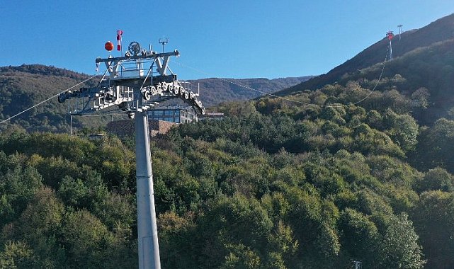 Kocaeli Büyükşehir Belediyesi'nin Kocaeli'yi turizmde bir üst lige taşıyacak ve Türkiye'nin en yüksek direk boyuna sahip teleferik hattında haberleşme halatı çekiliyor.