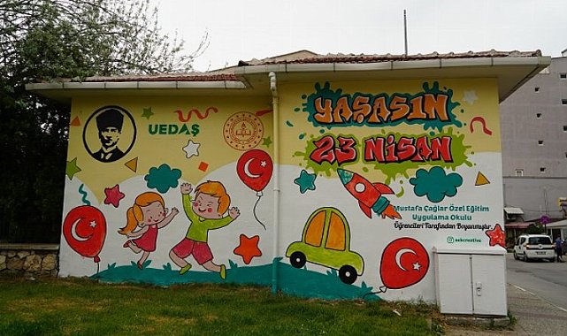 Uludağ Elektrik Dağıtım A.Ş. (UEDAŞ), 23 Nisan Ulusal Egemenlik ve Çocuk Bayramı'nı renkli bir etkinlikle kutladı. UEDAŞ, 'Trafolar Konuşuyor Sosyal Sorumluluk Projesi' kapsamında Mustafa Çağlar Özel Eğitim Uygulama Okulu öğrencileri ile 23 Nisan Ulusal Egemenlik ve Çocuk Bayramı'na özel bir graffiti çalışması yaptı.BURSA (İGFA) - Güney Marmara'da elektrik dağıtım hizmeti veren Uludağ Elektrik Dağıtım A.Ş. (UEDAŞ), 'Trafolar Konuşuyor Sosyal Sorumluluk Projesi' kapsamında Mustafa Çağlar Özel Eğitim Uygulama Okulu öğrencileri ile birlikte 23 Nisan Ulusal Egemenlik ve Çocuk Bayramı'na özel graffiti çalışması yaptı. UEDAŞ Genel Müdürü Gökay Fatih Danacı'nın da katıldığı etkinlikte özel eğitim gören çocuklar, Okul Müdürü Mahmut Bekiroğlu ve öğretmenleri ile birlikte trafonun duvarlarını rengarenk boyadı. Trafo duvarlarına "23 Nisan kutlu olsun" mesajı yazan çocuklar, trafoyu adeta bir boyama kitabına çevirerek, dünya çocuklarına armağan edilen bayramlarının mutluluğunu yaşadı."23 NİSAN BAYRAMINI TRAFO BOYAYARAK KUTLADIK"Çocuklarla birlikte trafoyu renklendiren UEDAŞ Genel Müdürü Gökhan Danacı; "2018 yılından bu yana her yıl 'Trafolar Konuşuyor' projemizi gerçekleştiriyoruz. Bugün de Mustafa Çağlar Özel Eğitim Okulu'nda eğitim gören çocuklarla birlikte buraya geldik ve trafomuzu boyadık. 23 Nisan Ulusal Egemenlik ve Çocuk Bayramı'nı çocuklarımızla beraber kutlamaktan ve birlikte 23 Nisan mesajları yazarak trafoyu boyamaktan çok mutluyuz. Hocalarımıza, öğrencilerimize bu etkinliğin gerçekleşmesinde emeği olan herkese katkıları için çok teşekkür ediyorum. Tüm çocukların 23 Nisan Çocuk Bayramı'nı kutluyorum" dedi.UEDAŞ'IN 2018'de başlattığı 'Trafolar Konuşuyor Sosyal Sorumluluk Projesi' kapsamında çocuklar bugüne kadar 72 trafo duvarına resim yaparak sosyal sosyal sorumluluk mesajları verdi.