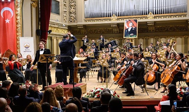 Trakya Üniversitesi Devlet Konservatuvarı Balkan Senfoni Orkestrası, T.C. Bükreş Büyükelçiliği tarafından düzenlenen Cumhuriyetin 100. yılı etkinlikleri kapsamında Bükreş'te muhteşem bir konsere imza attı.Erdoğan DEMİR / EDİRNE (İGFA) - Bükreş Büyükelçisi Özgür Kıvanç Altan ve eşi Aslı Altan'ın ev sahipliğinde, tarihi Athenaeum Salonu'nda geçekleştirilen konsere Başbakan Yardımcısı ve İçişleri Bakanı Cătălin Predoiu, Romanya Parlamentosu Romanya Türkiye Dostluk Grubu Başkanı Nicolae Georgescu, Dışişleri Bakanlığı Devlet Sekreteri Iullan Fota, Eski Başbakan Victor Ponta, büyükelçiler, bürokratlar, Nato temsilcileri, Türk ve soydaş STK mensupları katıldı.Trakya Üniversitesi Rektör Yardımcısı ve Devlet Konservatuvarı Müdürü Prof. Ahmet Hamdi Zafer'in şefliğindeki Balkan Senfoni Orkestrası, sanatseverlere unutulmaz bir gece yaşattı.Prof. Sevil Ulucan Weinstein ve Bas Bariton Burak Bilgili'nin de misafir sanatçı olarak katıldığı konserde, Batı ve Doğu müziğine ait eserlerin yanı sıra türkü ve marşlarla Cumhuriyet Bayramı coşkusu doruğa çıktı.Sanatseverler Balkan Senfoni Orkestrası tarafından seslendirilen Köçekçe, Re Minör 2 Keman Konçertosu, Hora Hartişorului, Romen Halk Dansları, L'aslesienne Suit No.1 1. Bölüm, Sevil Berberi Operasından "La Calunnia", Köroğlu, Uzun İnce Bir Yoldayım, Drama Köprüsü, Vardar Ovası, Bir Başkadır Benim Memleketim adlı eserlerle adeta bir müzik ziyafeti yaşadı. Konserin sonunda seslendirilen ve tüm salonun ayağa kalkarak eşlik ettiği 100. Yıl ve 10. Yıl Marşlarında ise büyük bir coşku yaşandı.Konser, protokol tarafından sanatçılara çiçek takdimi ile sona erdi.
