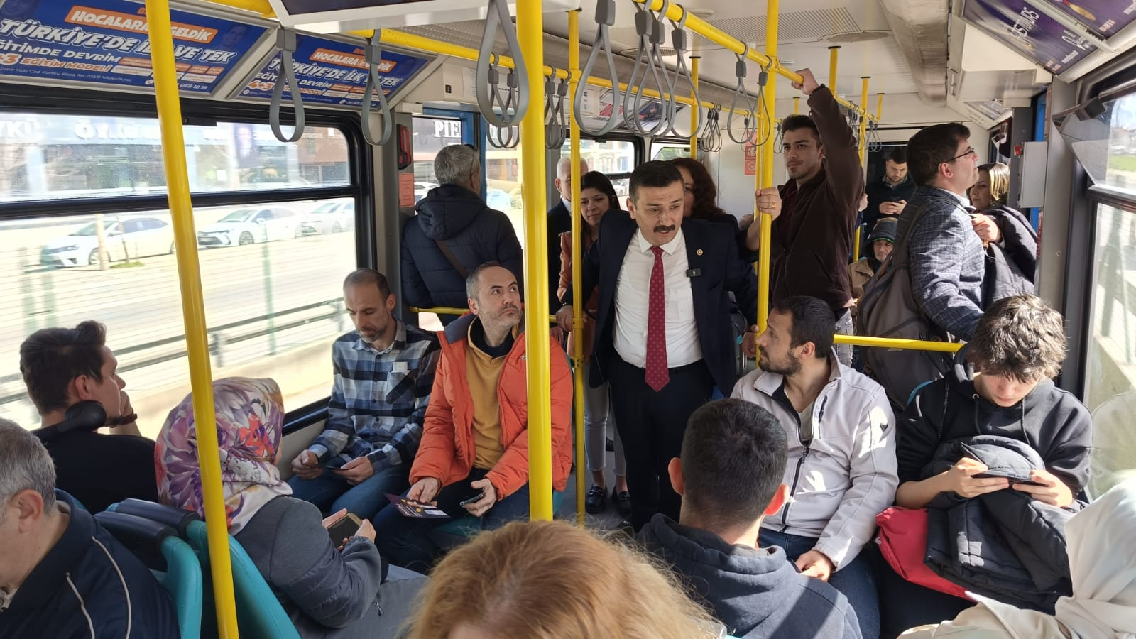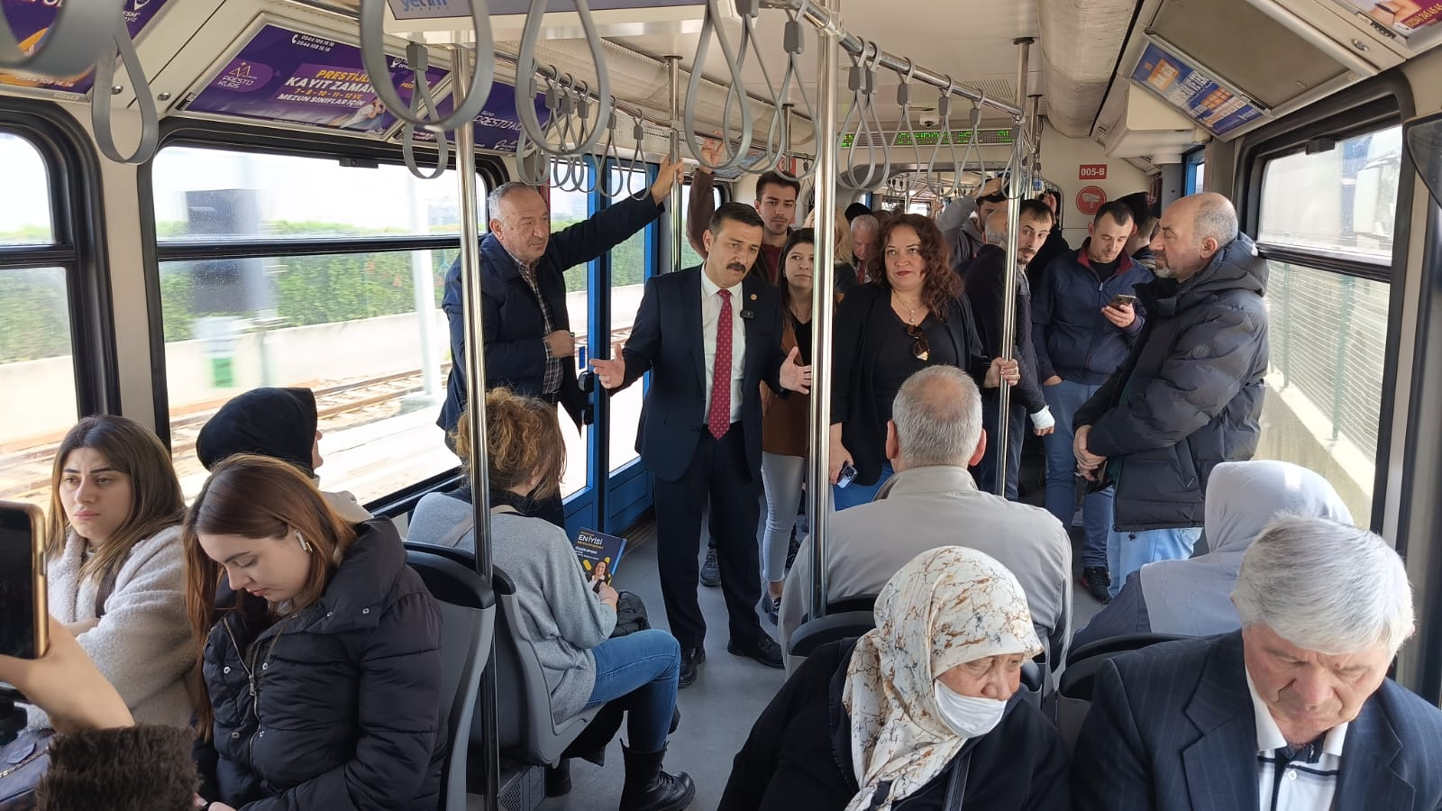 Bursa Büyükşehir Belediye Başkan Adayı Selçuk Türkoğlu, seçim çalışmalarını BURSARAY’a taşıdı. Osmangazi Belediye Başkan Adayı Orkun Özeller, Yıldırım Belediye Başkan Adayı Ayhan Özbek ve Nilüfer Belediye Başkanı Adayı Özgür Şimşek ile birlikte vagon vagon dolaşan Türkoğlu, “İktidar Partisi adaylarının Belediye kasasından harcadıkları yüz milyonları varsa, bizim de halkın parasıyla alınan toplu taşım araçlarımız ve vatandaşımızın karşımıza çıkacak cesaretimiz var, çok şükür” dedi.