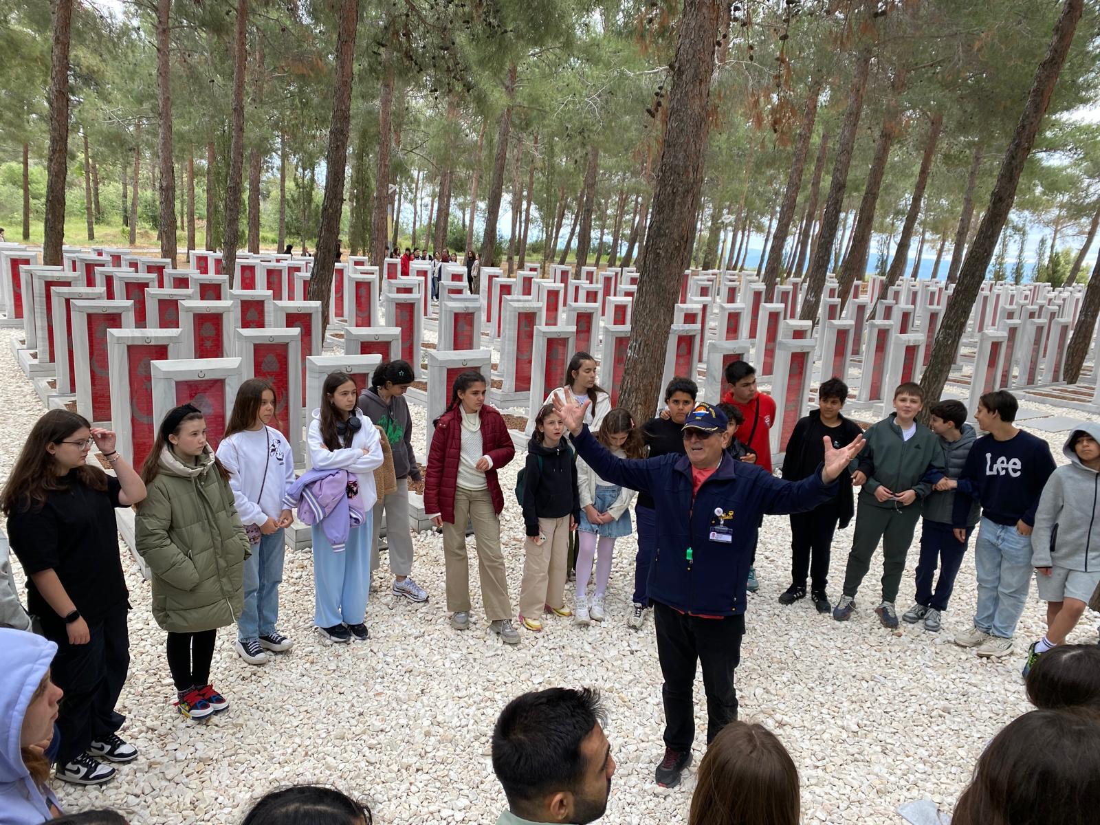 Müze gezisinden sonra Çanakkale Şehitler Abidesini ziyaret eden öğrenciler atalarının mezarlarını ziyaret etti.
