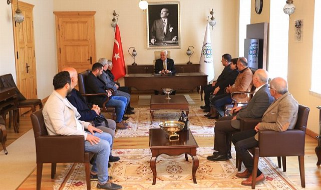 MUĞLA (İGFA) - Muğla Büyükşehir Belediye Başkanı Dr. Osman Gürün'e teşekkür ve veda ziyaretine Muğla Tarım Güçbirliği İşletme Kooperatifi ve Güçbirliği ortağı Bafa Doğal Yaşam Tarımsal Üretim Ve Pazarlama, Fethiye Ata Tarımsal Kalkınma, Karabörtlen Tarımsal Kalkınma, Marmaris Makko Kadın Girişimi İşletme, Marmaris Tarımsal Kalkınma, Yerkesik Tarımsal Kalkınma, Beyobası Tarımsal Kalkınma, Datça Sındı Tarımsal Kalkınma kooperatifleri katıldı.