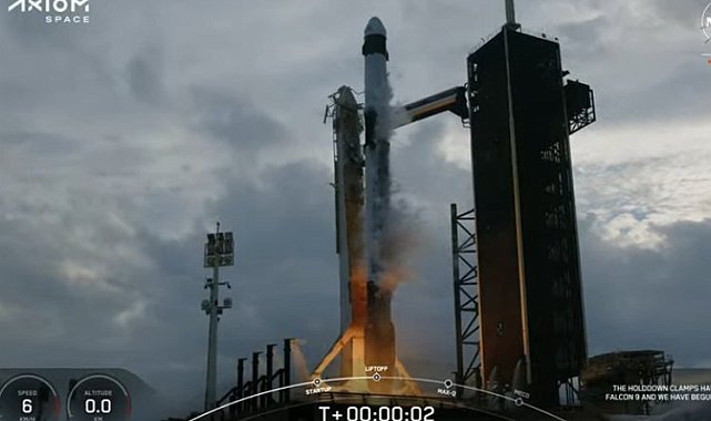 Türkiye'nin ilk uzay yolcusu Alper Gezeravcı'nın da içinde yer aldığı SpaceX'e ait uzay aracı, Florida'daki Kennedy Uzay Merkezi'nden başarıyla fırlatıldı. Cumhurbaşkanı Erdoğan, tarihi uzay misyonu dolayısıyla videolu mesaj yayımladı.ANKARA (İGFA) - ABD'nin Florida eyaletinde bulunan Kennedy Uzay Merkezi'ndeki Fırlatma Kompleksi 39A'dan gerçekleştirilen fırlatma işlemiyle Ax-3 misyonunun üyesi olan Gezeravcı'nın uzay yolculuğu başladı.SpaceX firmasına ait Dragon kapsülünü Uluslararası Uzay İstasyonu'na (ISS) taşıyacak olan Falcon 9 roketi, canlı yayınlanan geri sayımın ardından ABD yerel saatiyle 16.49'da (TSİ 00.49) fırlatıldı. Uzunluğu 70 metre, çapı 3,7 metre ve yaklaşık 550 ton ağırlığındaki Falcon 9 roketi, alçak Dünya yörüngesinde 22 bin, durağan aktarım yörüngesinde 8 bin 300 ve Mars'ta 4 bin kilogram yük taşıma kapasitesine sahip. CUMHURBAŞKANI ERDOĞAN'DAN VİDEOLU MESAJÖte yandan Cumhurbaşkanı Recep Tayyip Erdoğan, tarihi uzay misyonuna dakikalar kala videomesaj yayımladı.Cumhurbaşkanı Erdoğan, "Tarihte taşıdığımız misyonu yeniden icra etmek adına çok değerli yeni bir başlangıç yapıyoruz" diyerek ilk Türk astronot Alper Gezeravcı'yı tebrik ederek başarılar diledi.