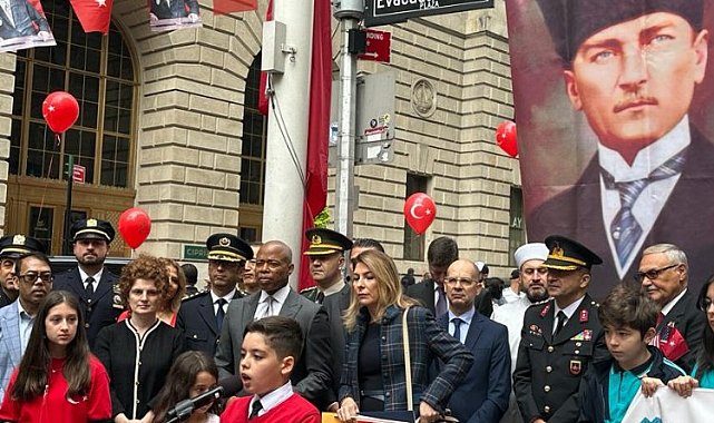 Türk Amerikan toplumu temsilcisi İbrahim Kurtuluş'un 23 yıldır düzenlediği organizasyon, yoğun ilgi gördü.New York'ta Türkiye Cumhuriyeti'nin kuruluşunun 100. yılı kutlamaları kapsamında Wall Street'teki boğa heykeli önünde bayrak çekme töreni yapıldı.Türk Amerikan toplumu temsilcisi İbrahim Kurtuluş'un 23 yıldır düzenlediği organizasyona; Türkiye'nin New York Başkonsolosu Reyhan Özgür, New York Belediye Başkanı Eric Adams, Kore Cumhuriyeti'nin New York Başkonsolosluğu Başkonsolosu Euy Whan Kim, KKTC New York Temsilcisi Mehmet Dânâ, NYPD mensubu Türk polisler, Türk Ordusu mensubu iki rütbeli asker ve çok sayıda vatandaş katılım sağladı.Asl Translation'un sahibi Aslı Cavlak'ın şiir okuduğu törende, New York Atatürk ve Cumhuriyetçi okulu öğrencileri, öğretmenleri ve yöneticileri de yer aldı. Ayrıca her iki okulun öğrencileri de şiir okuyarak Cumhuriyetin 100. yılını kutladı.NY Türk Amerikan Toplum Merkezi NYTAC'ın Başkanı Erol Akyürek, düzenlenen tören kapsamında bir konuşma yaptı. Belediye Başkanı Eric Adams, Alibaba Restoranın sahibi Ali Rıza Doğan ve babası Cemal Doğan'a, göçmenlere yaptıkları yardımlardan ötürü takdir belgesi verdi.New York Din Hizmetleri Ateşesi Ali Tos, törenin ardından dua okudu.