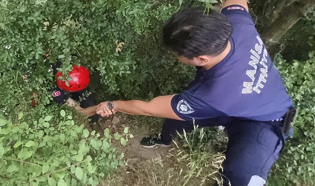 H.O.'nun yamaçtan aşağı düştüğünü gören arkadaşı, durumu hemen 112 Acil Çağrı Merkezi'ne bildirdi. Olay yerine kısa sürede ulaşan Manisa Büyükşehir Belediyesi itfaiye ekipleri tarafından kurtarma çalışması başlatıldı.