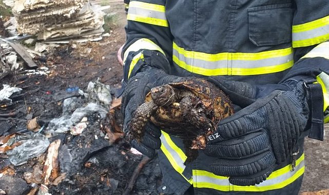 Kocaeli İtfaiyesi Dilovası'nda müdahale ettiği yangında kaplumbağayı son anda yanmaktan kurtardı.KOCAELİ (İGFA) - Kocaeli Büyükşehir Belediyesi İtfaiye Dairesi Başkanlığına bağlı ekipler Dilovası'nda ağaçlık alanda çıkan yangına müdahale etti. Yangından etkilenen kaplumbağa son anda kurtarılarak doğaya salındı.Sabah saatlerinde Dilovası Fatih Mahallesinde ağaçlık alanda bilinmeyen bir nedenden dolayı yangın çıktı.Yapılan ihbarın ardından İtfaiye Dairesi Başkanlığına bağlı ekipler harekete geçti. Çıkan yangına ekipler kısa sürede müdahale etti.Söndürme sırasında bir itfaiye personeli kaplumbağanın alevlerin arasında kaldığını fark etti.Ekipler kısa sürede kontrol altına aldığı yangında kaplumbağaya bir zarar gelmeden kurtarmayı başardı. Su ile soğutulan kaplumbağa kontrol edildikten sonra doğaya bırakıldı.