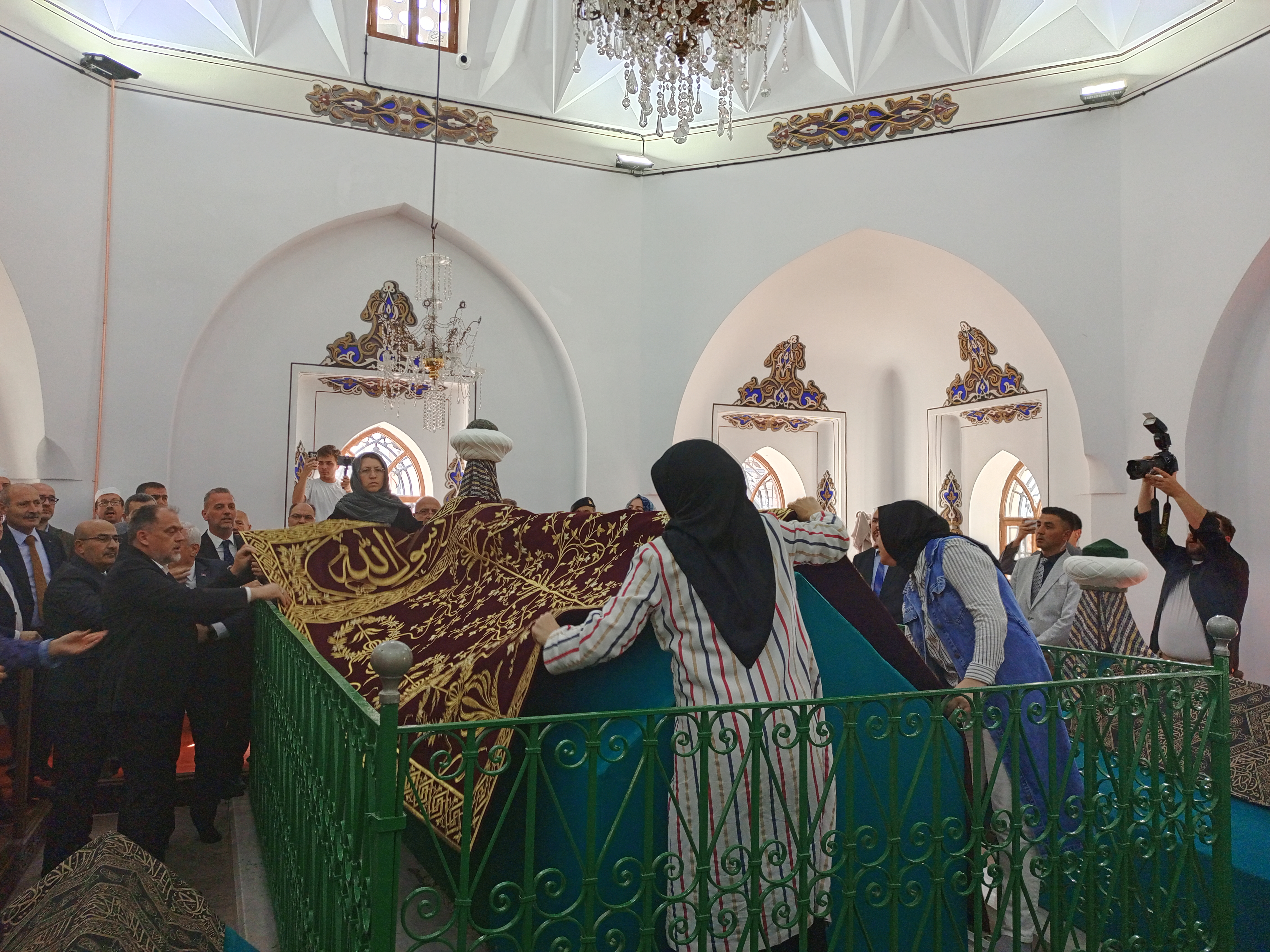 Törende türbe içerisinde türbe puşidesinin örtülmesinde Bursa Valisi Demirtaş, BaşkanBozbey ve protokolün katılımı ile örtü serilimi gerçekleşti. Gerçekleşen törende Kuran'ı Kerim'den ayetler okunarak dualar edildi.