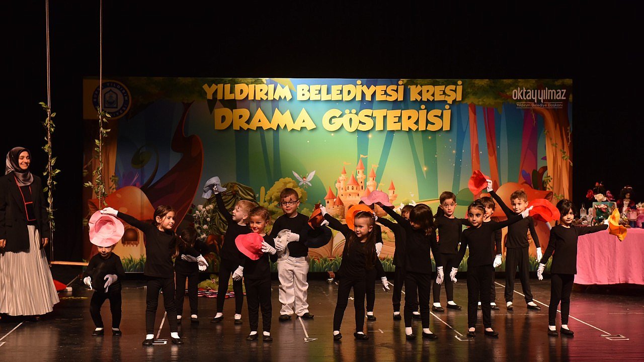 Yıldırım Belediyesi Kreşi öğrencilerinin yıl sonu gösterisi, ayakta alkışlanırken, ailelere duygusal anlar yaşattı.