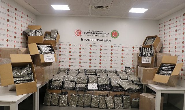 İstanbul Havalimanı'nda Gümrük Muhafaza Ekiplerince gerçekleştirilen operasyon neticesinde, transit bir hava kargo gönderisinde 432 kilogram esrar ele geçirildi.Erdoğan DEMİR / İSTANBUL (İGFA) - Ticaret Bakanlığına bağlı İstanbul Havalimanı Gümrük Muhafaza Kaçakçılık ve İstihbarat Müdürlüğü NARKOKİM birimlerince gerçekleştirilen risk analizi çalışmaları kapsamında, yurt dışından gelen ve transit olarak bir Avrupa ülkesine gönderilmek istenilen hava kargo gönderisi şüpheli bulunarak incelemeye alındı. Yapılan detaylı arama sonucunda, narkotik dedektör köpekler de kolilere tepki vermesi üzerine ekiplerimizce açılan kolilerin içerisinde 432 kilogram esrar cinsi uyuşturucu madde ele geçirildi. Piyasa değeri yaklaşık 140 milyon TL olarak tahmin edilen uyuşturucu madde yakalamasıyla ilgili soruşturma Gaziosmanpaşa Cumhuriyet Başsavcılığı nezdinde yürütülmektedir.