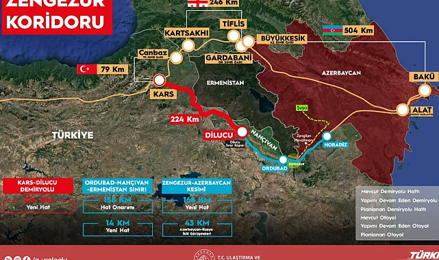 Kars-Iğdır-Aralık-Dilucu Demiryolu Hattı'nın temeli 22 Ağustos Cuma günü atılıyor. Ulaştırma ve Altyapı Bakanı Abdulkadir Uraloğlu, 224 kilometrelik hattın Zengezur Koridoru'nun önemli bir parçası olduğunu belirterek, bu işlerlikle birlikte Pekin'den Londra'ya kadar uzanan doğu-batı hattının daha verimli işleyeceğini duyurdu.ANKARA (İGFA) - Ulaştırma ve Altyapı Bakanı Abdulkadir Uraloğlu, Türkiye'nin doğusunda yük ve yolcu taşımacılığını güçlendirecek Kars-Iğdır-Aralık-Dilucu Demiryolu Hattı'nın temelinin 22 Ağustos Cuma günü atılacağını duyurdu.Bakan Uraloğlu, hattın hem Türkiye'nin lojistik kapasitesini artıracağını hem de Asya'ya uzanan ticaret yollarında ülkenin jeostratejik güven adası olma özelliğini perçinleyeceğini söyledi.Hazine ve Maliye Bakanlığı tarafından yürütülen çalışmalar neticesinde proje için 2,4 milyar avroluk dış finansman sağlandığını hatırlatan Bakan Uraloğlu "Kars-Iğdır-Aralık-Dilucu Demiryolunu, 224 kilometre uzunluğunda, çift hatlı, elektrifikasyonlu ve sinyalizasyonlu inşa edeceğiz. Hattımız yılda 5,5 milyon yolcu ve 15 milyon ton yük taşıma kapasitesine sahip olacak. Projede 5 tünel, 19 aç-kapa tüneli, 3 viyadük, 10 köprü, 144 altgeçit, 27 üstgeçit ve 480 menfez yer alacak" açıklamasında bulundu.ZENGEZUR KORİDORU'NUN ÖNEMLİ PARÇASI OLACAKTemel atılacak hattın Azerbaycan ile Nahçıvan Özerk Cumhuriyeti arasındaki bağlantıyı sağlayacak Zengezur Koridoru'nun önemli bir parçası olduğunu belirten Uraloğlu, bu hattın Trans-Hazar ve Kuzey-Güney koridorlarını güçlendirerek Avrasya'nın tedarik ve lojistik ağlarını kuvvetlendireceğini, Türkiye'yi bölgesel işbirliğinin merkezine yerleştireceğni kaydetti. Güney Kafkasya'daki ekonomik işbirliğini artıracak Zengezur Koridoru'nun işlerlik kazanmasıyla birlikte Pekin'den Londra'ya kadar uzanan Doğu-Batı hattı daha verimli işleyeceğini söyleyen Bakan Uraloğlu, "Orta Koridor'un demiryolu ve karayolu yük taşıma kapasitesi artacak." dedi.