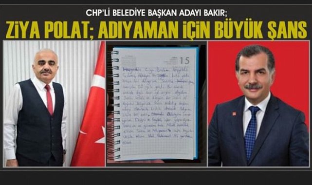Geçmiş dönemde Cumhuriyet Halk Partisi (CHP) Adıyaman Belediye Başkan Adayı olan Zeynal Bakır'dan AK Parti Adıyaman Belediye Başkan Adayı Ziya Polat'a övgü dolu sözler.Adıyaman Sanal Haber / ADIYAMAN (İGFA).- 2009 Mahalli İdareler Seçimlerinde CHP'den Adıyaman Belediye Başkanlığı aday adaylığı, 30 Mart 2014 Yerel Seçimlerinde de CHP'nin Adıyaman Belediye Başkan Adayı olan Zeynal Bakır, AK Parti Adıyaman Belediye Başkan Adayı Ziya Polat'ın başarılı olacağına inandığını belirterek, "Senin vefalı ve düzgün bir insan olduğunu biliyorum. Senin Belediye Başkanı olmanın bu kritik dönemde Adıyaman için bir şans olduğuna inanıyorum." ifadelerini kullandı.CHP'li Başkan adayını ziyaret eden Polat sosyal medya hesabından ziyaretle ilgili yaptığı paylaşımda şu ifadelere yer verdi; "2014 yılı Mahalli İdareler Seçimlerinde Cumhuriyet Halk Partisinden Adıyaman Belediye Başkan Adayı olarak gösterilen Sn. Zeynal Bakır'ı ziyaret ettik. Geçirdiği rahatsızlık nedeniyle konuşma yetisini kaybeden ancak duygularını yazdığı notla bizlere aktaran değerli siyasetçimize geçmiş olsun dileklerimi iletiyorum. Allah yardımcısı olsun."CHP'li eski Başkan Adayı Zeynal Bakır ise Ziya Polat'ın ziyaretinden büyük mutluluk duyduğunu ifade ettiği notunda; "Ziya Başkan hoş geldin. Çıkmış olduğun bu kutsi yolda başarılar diliyorum. Seninle tanışalı 20 yıl geçti. Bu sürede seninle ilgili hep iyi şeyler duydum. Senin vefalı ve düzgün bir insan olduğunu biliyorum. Senin Belediye Başkanı olmanın bu kritik dönemde Adıyaman için bir şans olduğuna inanıyorum. Doğru ve faydalı işler yapacağına inancım ve güvenim tam. Allah muvaffak etsin. Senin için ve Adıyaman için hayırlara vesile olsun. Hak Muhammed Ali yardımcın olsun." ifadelerini kullandı.